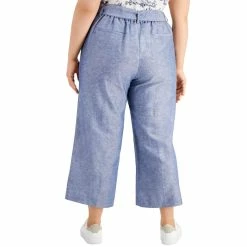 Bar III Plus Womens Tie Waist Linen Blend Wide Leg Pants