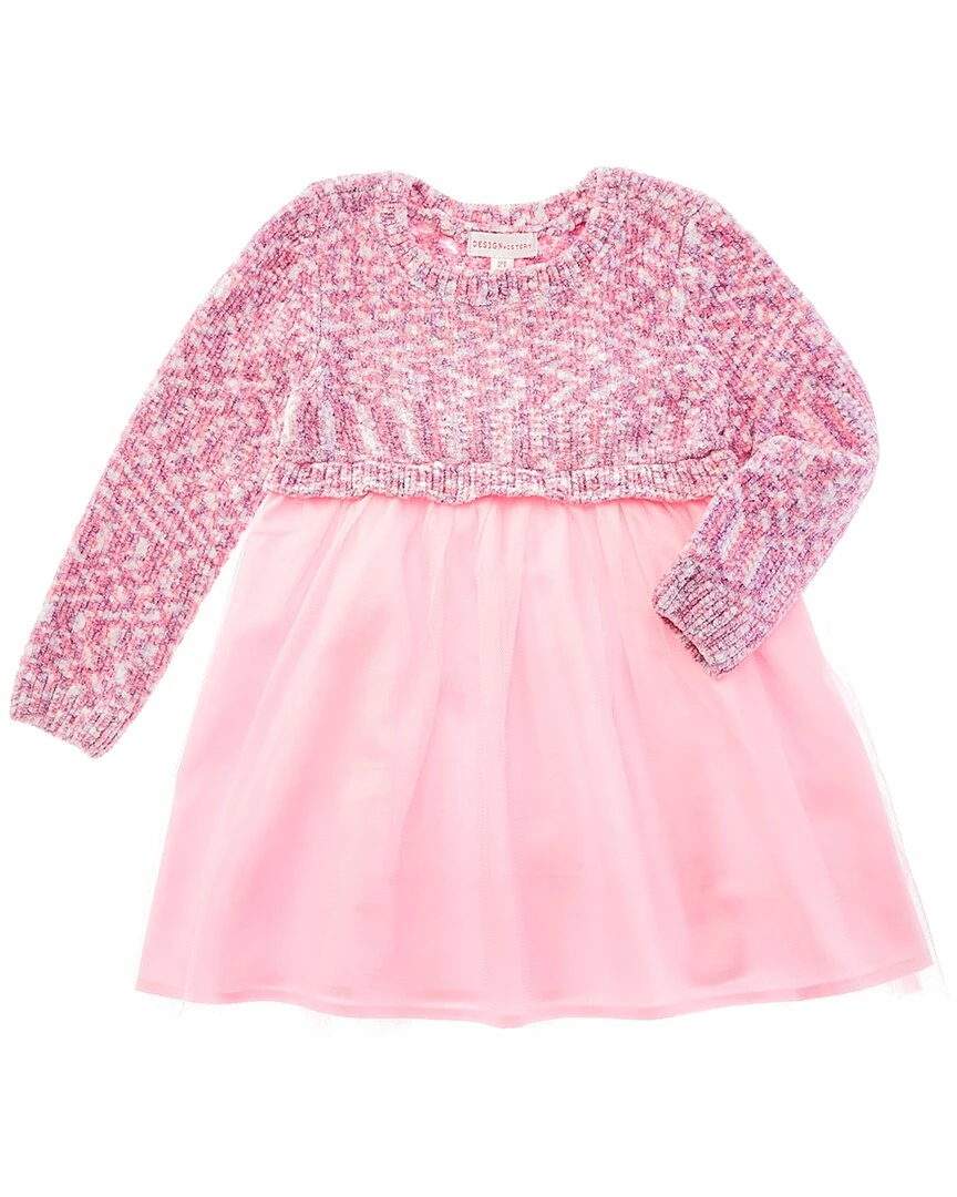 - Chenille Dress In Purple/Fuchsia Combo With Chenille Bodice And Tulle Skirt Overlay