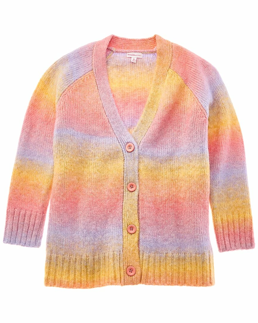 - Rainbow Wool-Blend Cardigan In Rainbow With V-Neck And Ribbed Trim