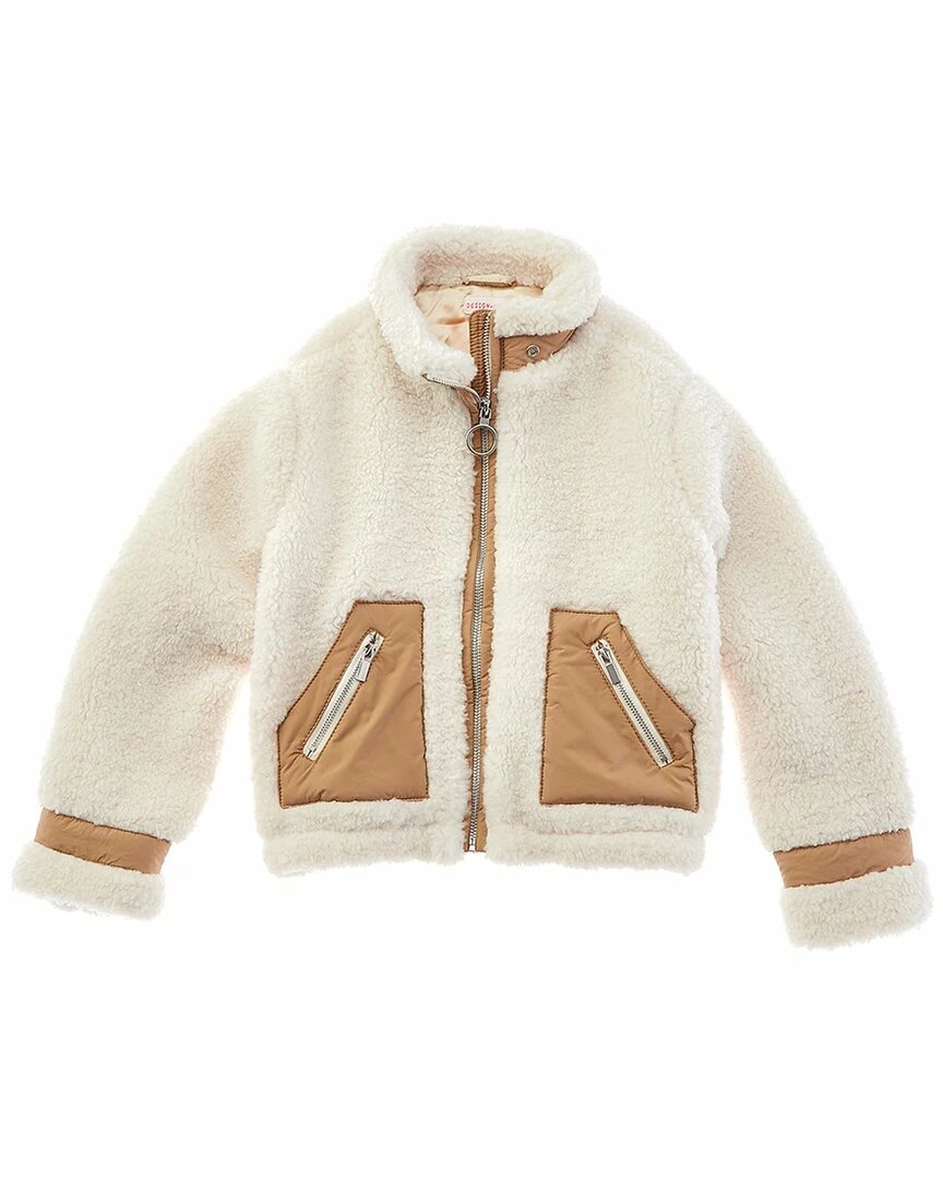 - Sherpa Jacket In Winter White Combo With Sherpa Construction, Contrast Paneling, Two Front Zippered Pockets And Zippered Cuffs