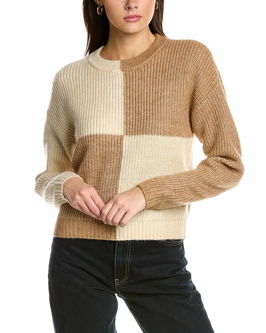 - Colorblocked Sweater In Cottoncloud Tan Leaf With Dropped-Shoulder Sleeves