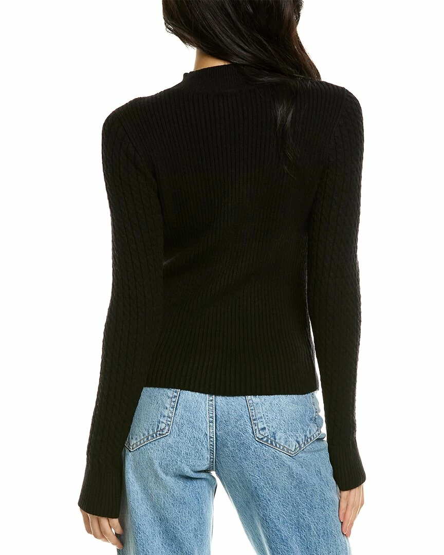 - Cutout Sweater In Black With Mixed Knit, Cutout Neckline And Faux Button Front