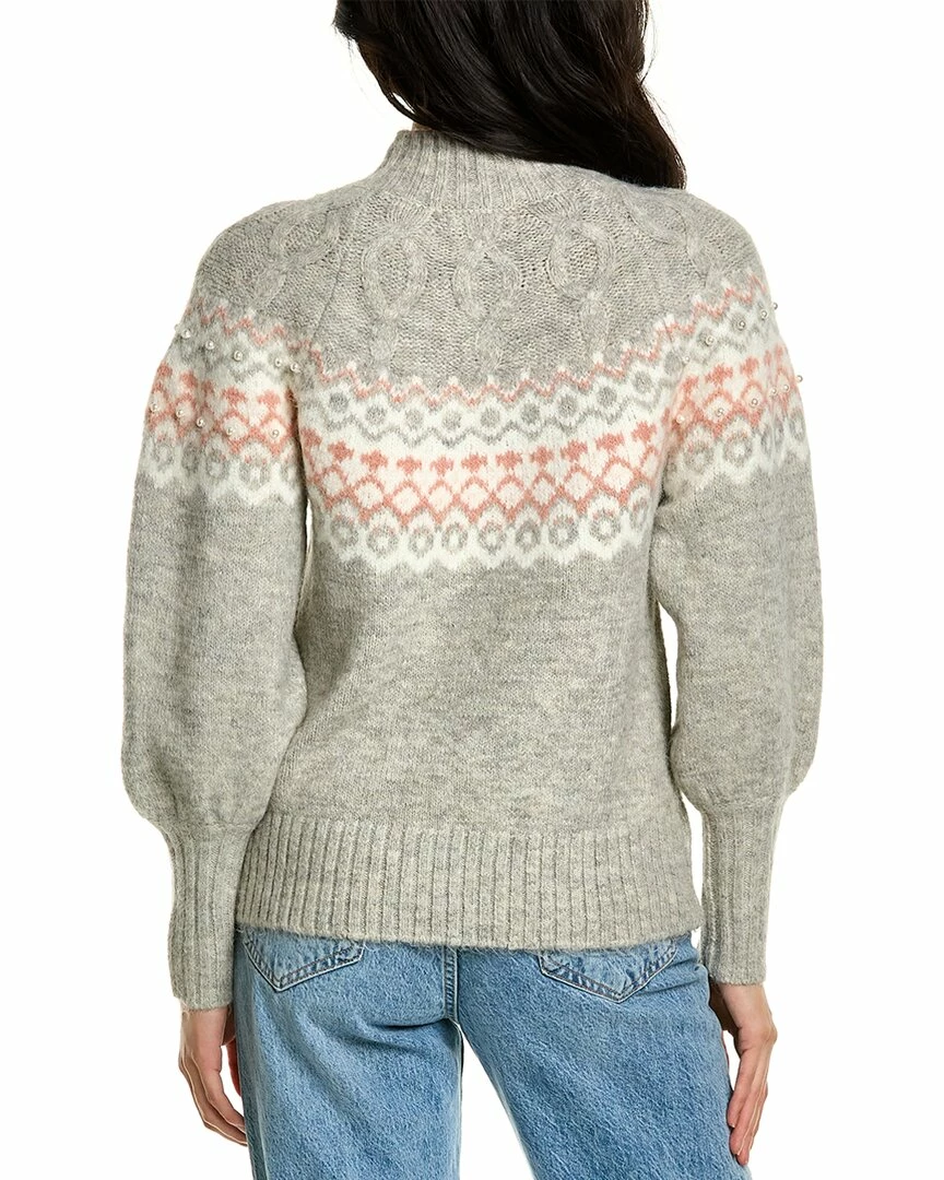 - Pearl Detail Alpaca & Wool-Blend Sweater In Thermal Grey With Mock Neck, Pearl Embellishments And Ribbed Trim