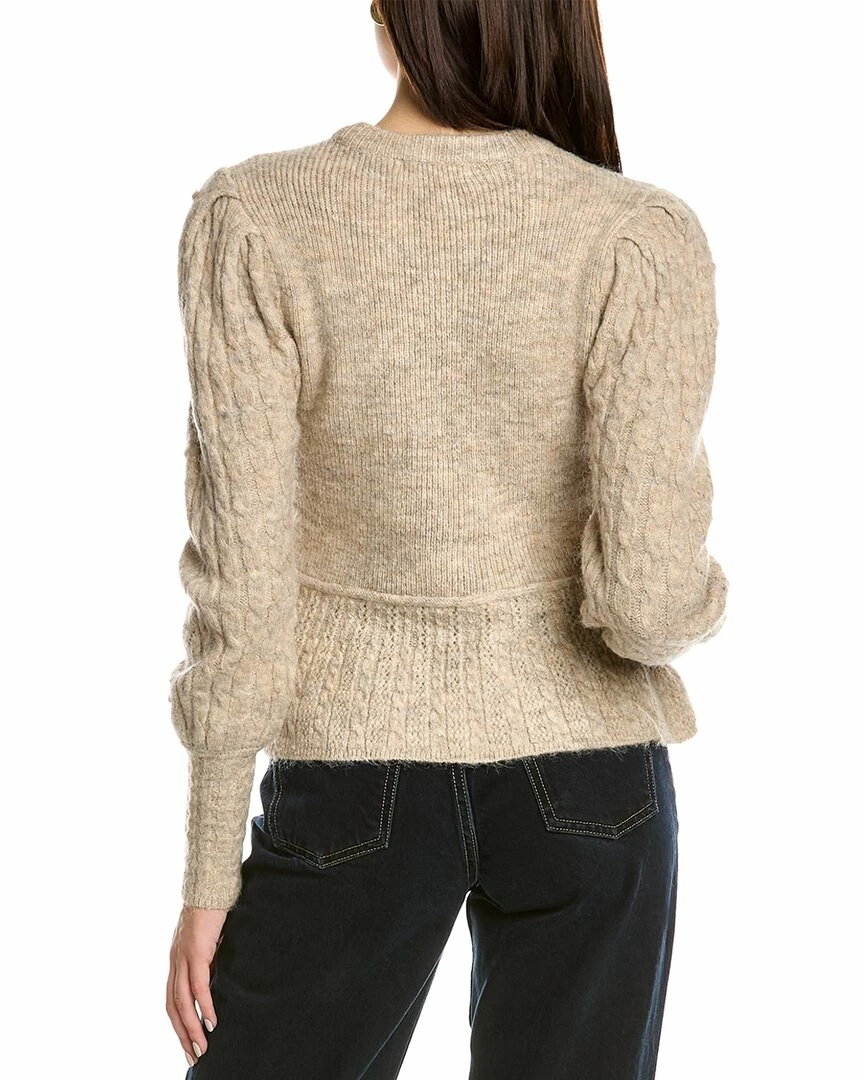 - Peplum Alpaca & Wool-Blend Pullover In Tan Leaf With Blouson Sleeves