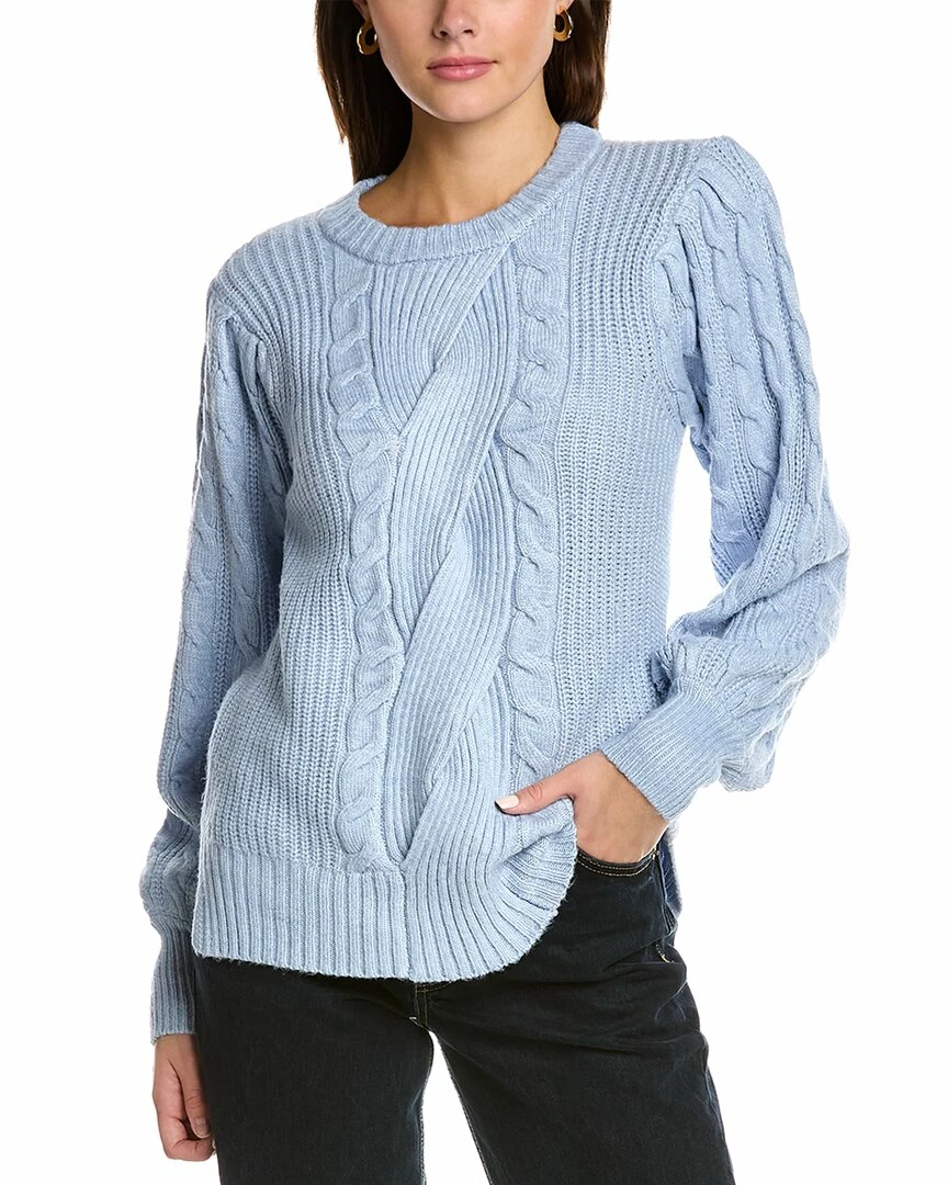 - Puff Sleeve Sweater In Soft Blue With Blouson Sleeves