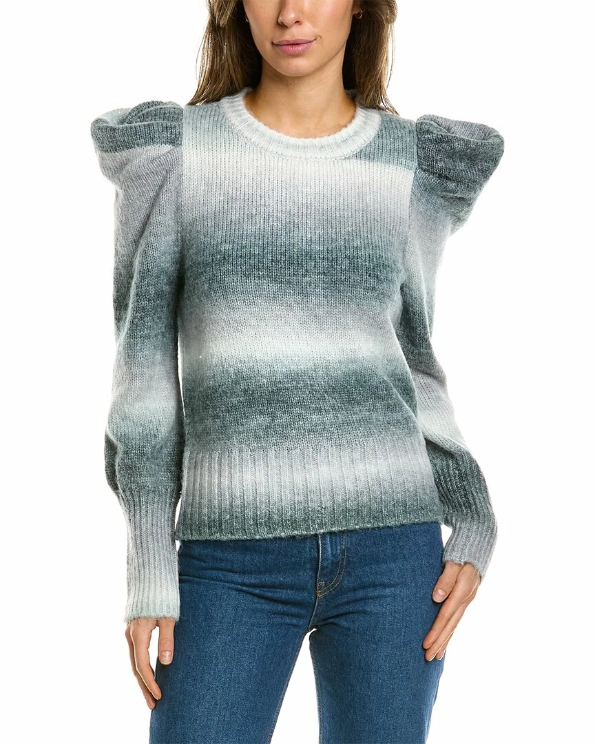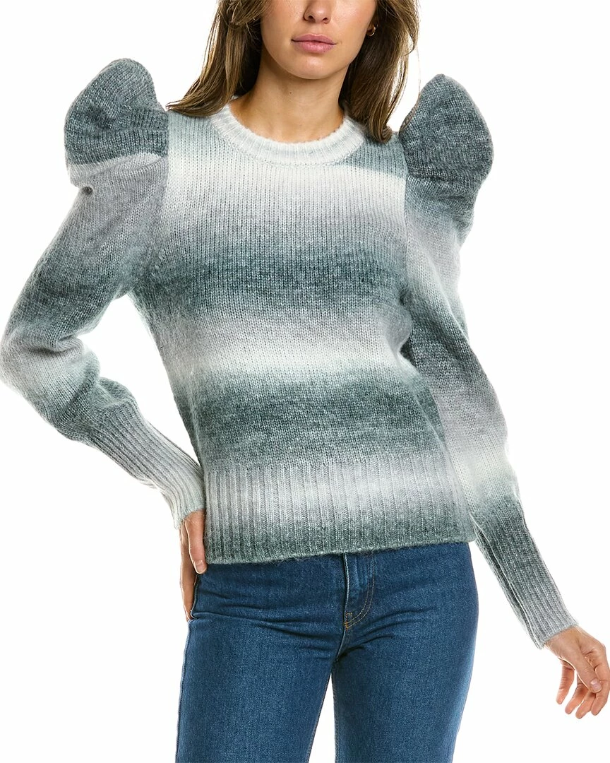 - Puff Sleeve Sweater In Black White Combo With Crewneck, Puff Sleeves And Ribbed Trim