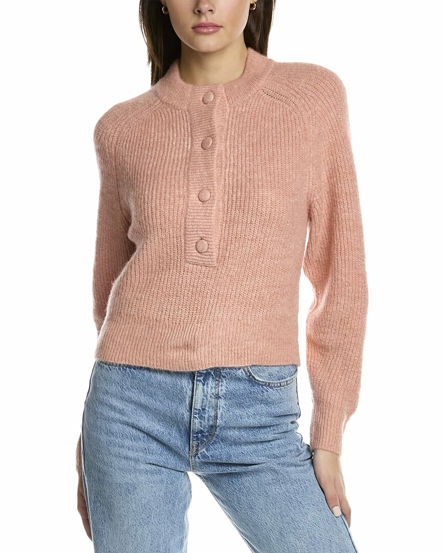 - Crewneck Alpaca & Wool-Blend Cardigan In Peach