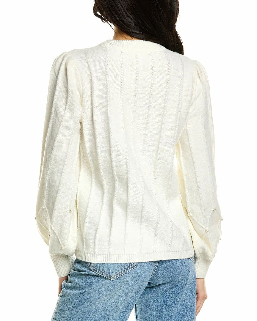- Shine Mock Neck Sweater In Winter White With Pearl Embellishments And Ribbed Trim