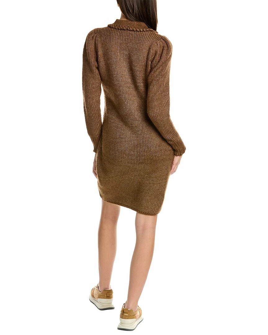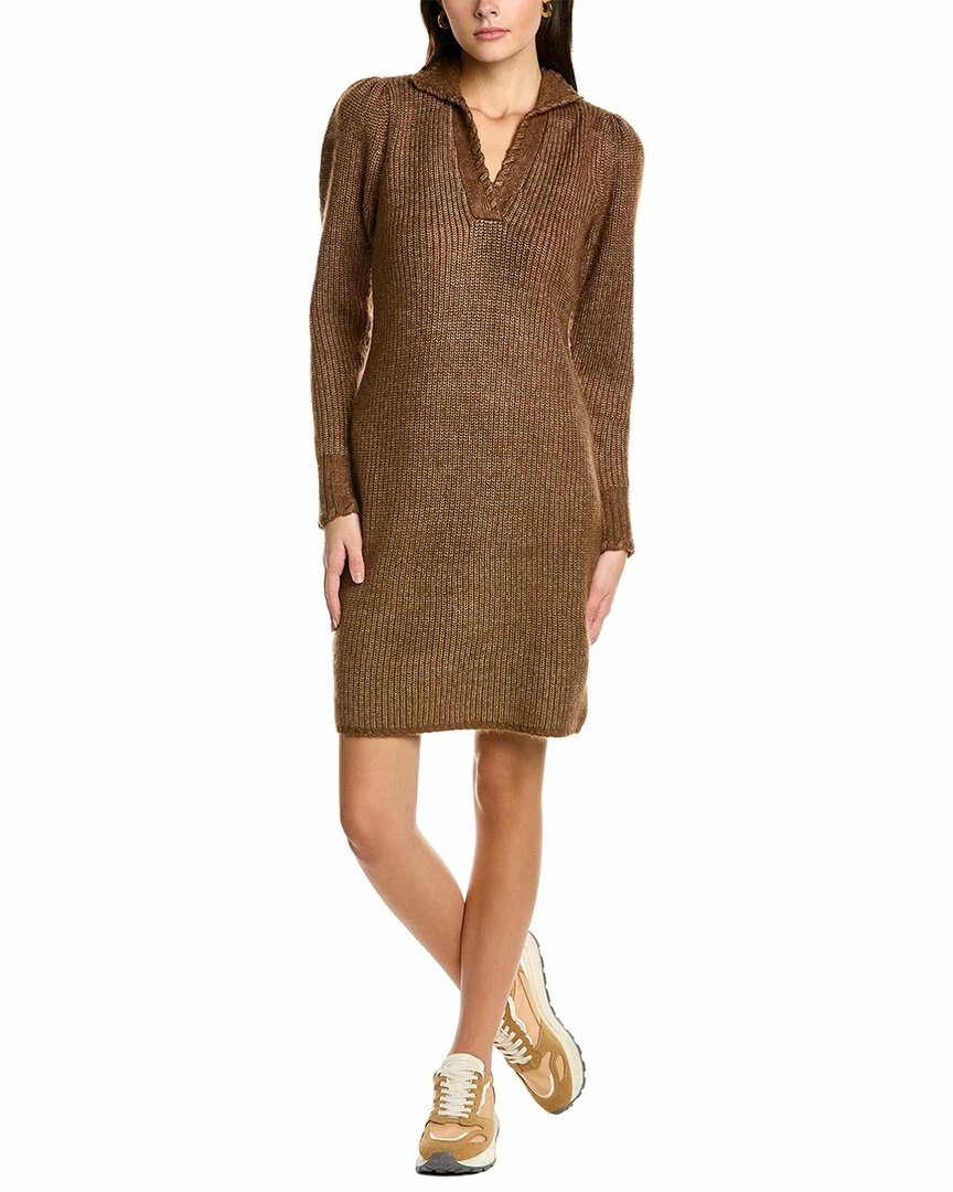 - Sweaterdress In Winter Brown Combo With Spread Collar And V-Neck