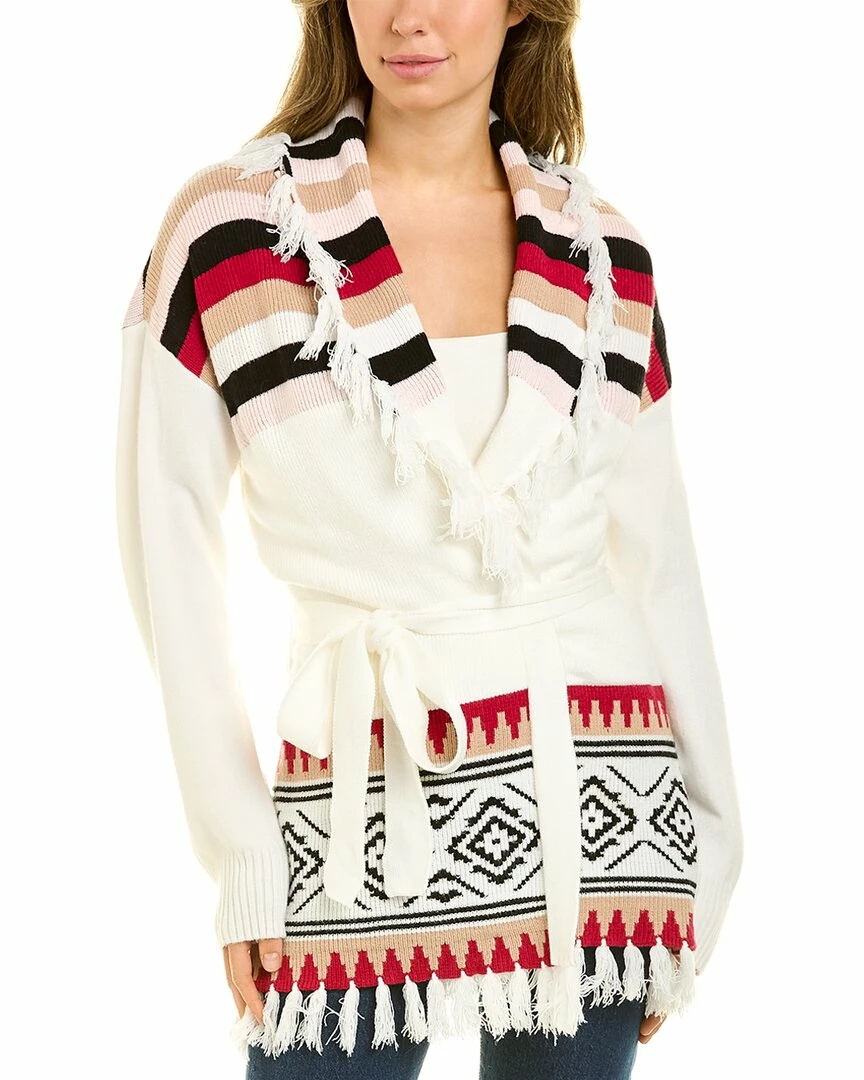 - Tassel Cardigan In Cotton Cloud Combo With Shawl Lapel, Tassel Accents And Ribbed Trim