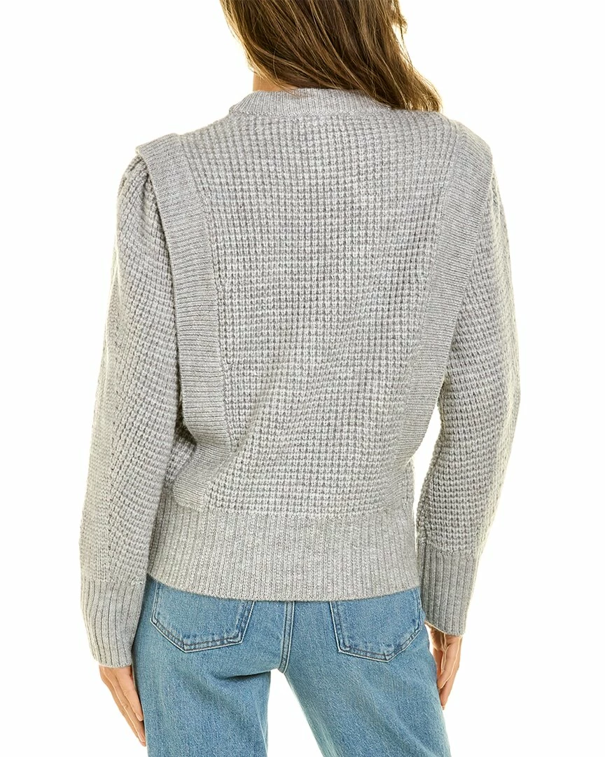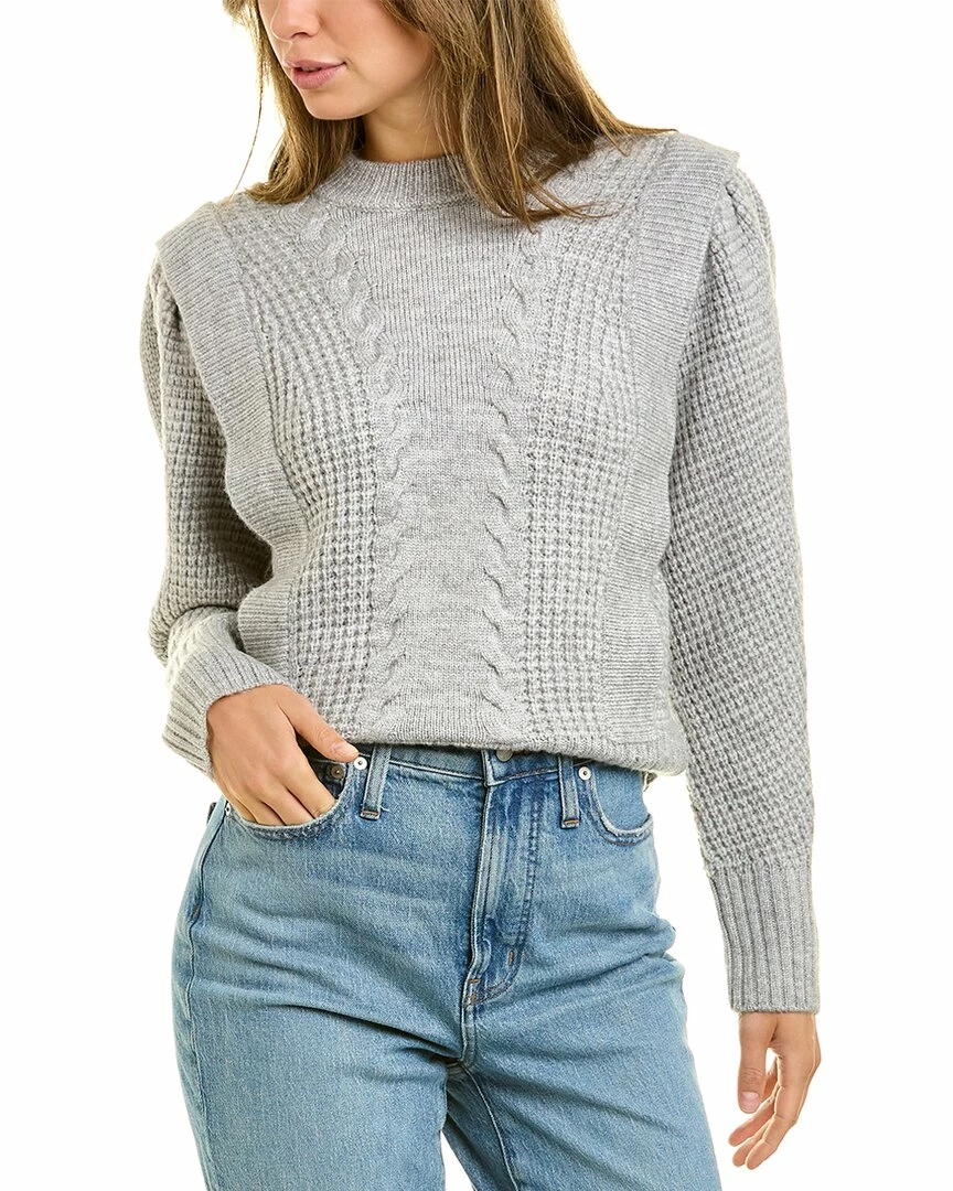 - Volume Sleeve Sweater In Oxford With Mixed Stitch, Crewneck, Layered Shoulder And Ribbed Trim